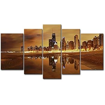 Amazon Com 5 Panel Wall Art Painting Chicago Skyline Prints On