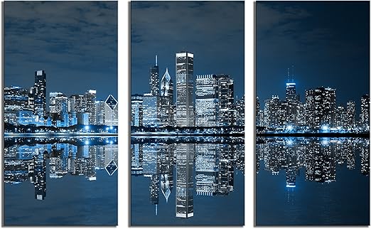 Amazon Com Blue Cool Building In Dark Color In Chicago Wall Art