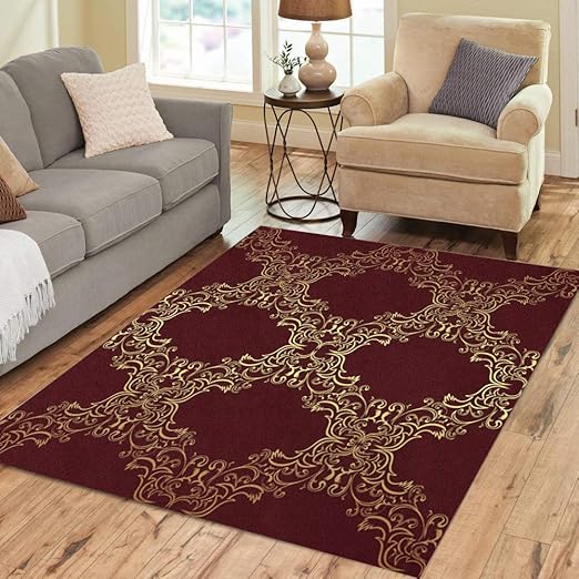 Amazon Com Semtomn Area Rug 3 X 5 Flower Damask Gold On Red