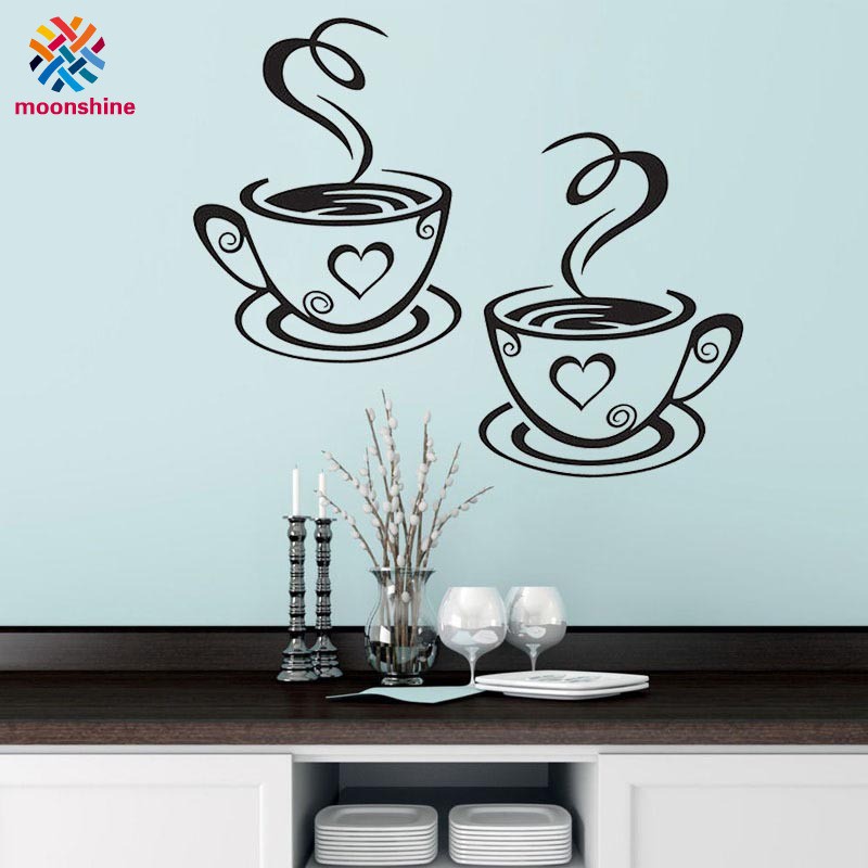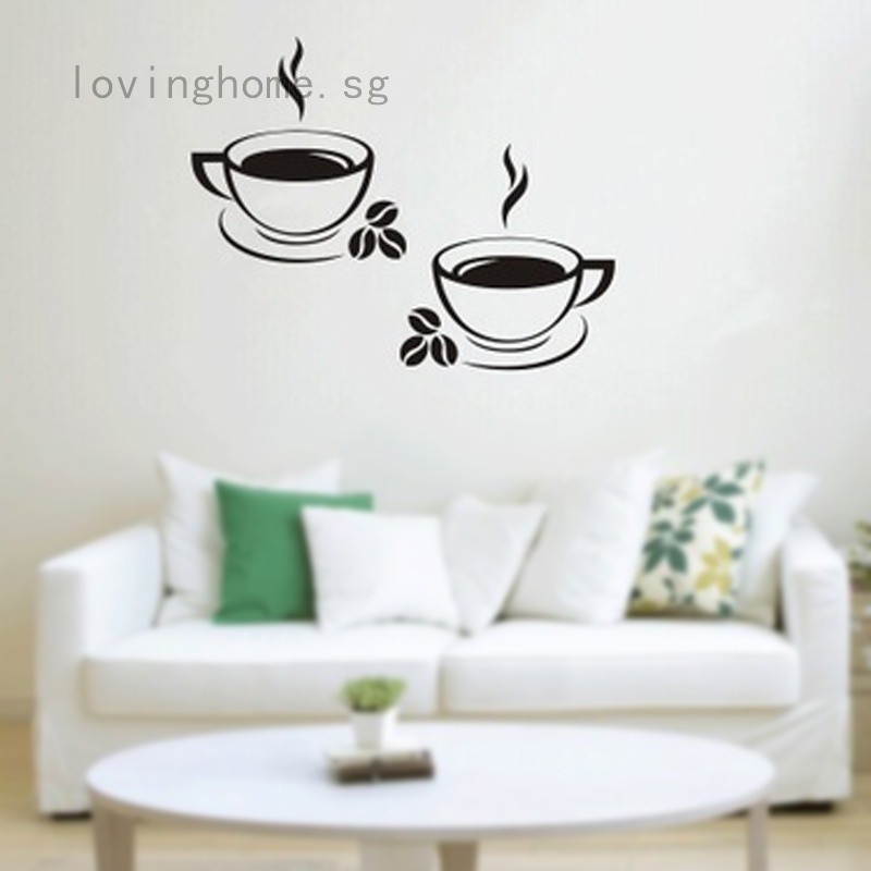 1 Pair Coffee Cup Wall Sticker Removable Home Shop Restaurant