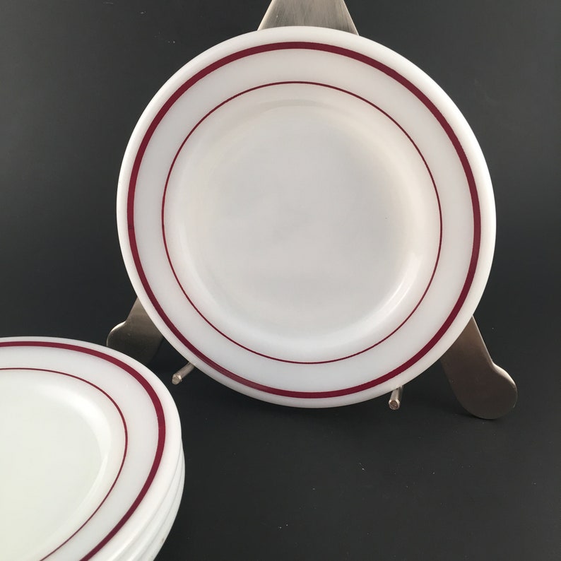 Set Of 4 Corning Decor Milk Glass Plates Burgundy Stripe Etsy