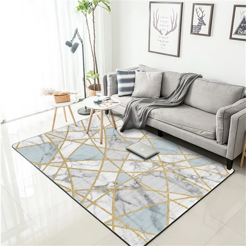 Fashion Living Room Large Size Carpet Modern Golden Geometric