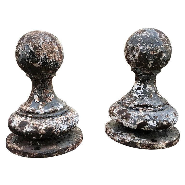 Pair Of Metal Garden Post Round Spherical Antique Decorative