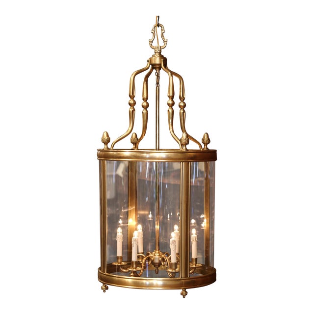 Mid 20th Century French Six Light Brass Lantern With Decorative