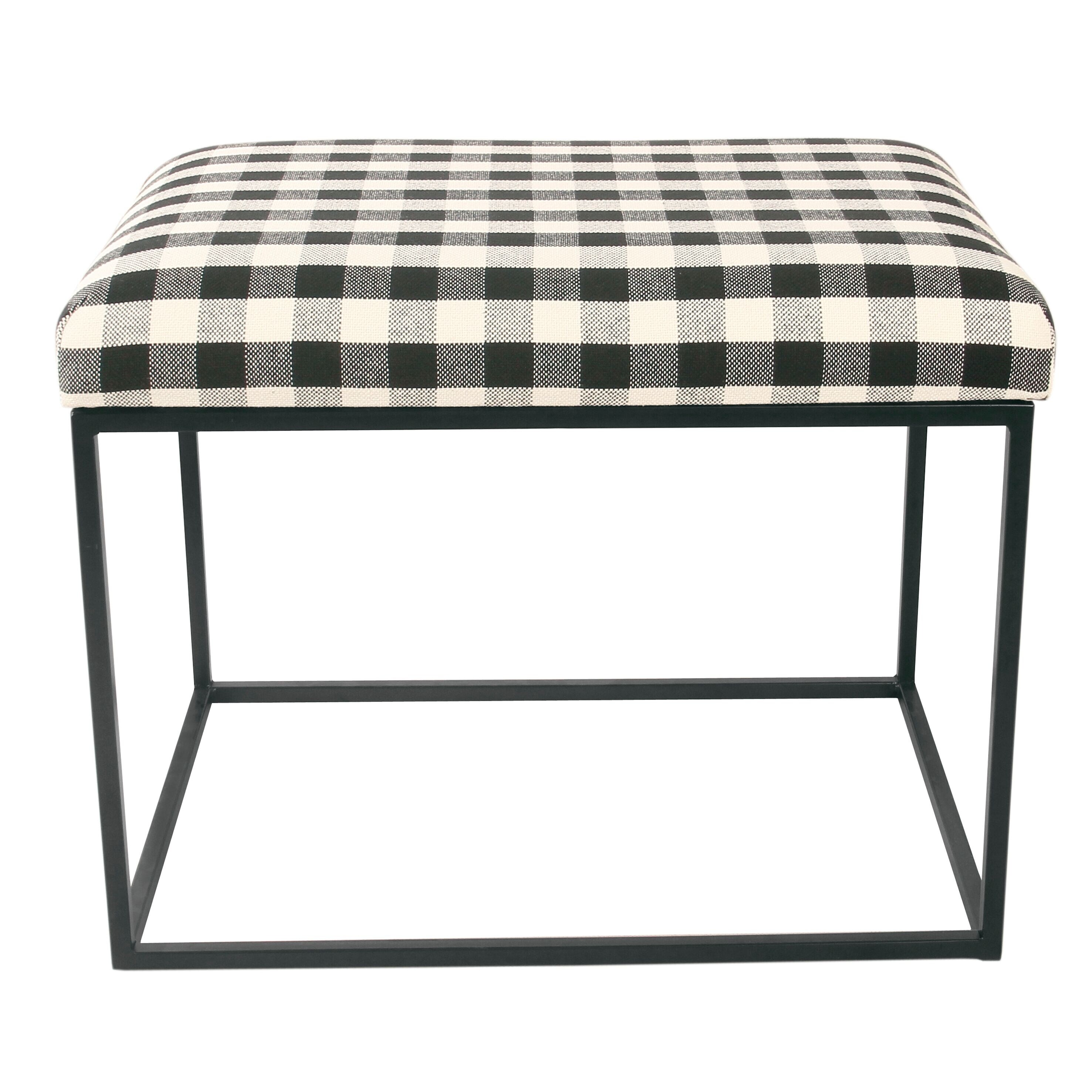 Shop Homepop Small Decorative Ottoman Mini Black Plaid On Sale