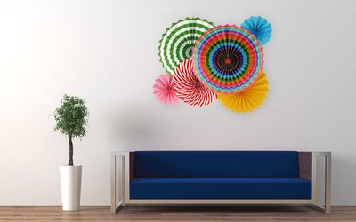 6pk Vibrant Colors Hanging Paper Fans Kentucky Derby Party