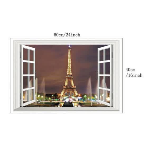 Shop 3d Window Paris Eiffel Tower Diy Wall Sticker Art Vinyl Decal