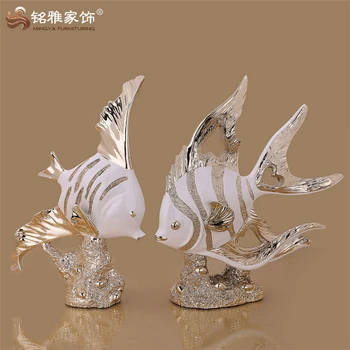 Home Decor Figure European Style Lifelike Fish Gold Silver Resin