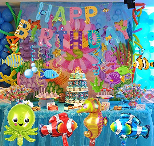 Tropical Fish Birthday Banner Fishing Party Decorations Under