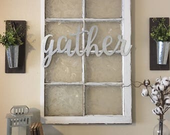 26 Galvanized Metal Gather Word Art On Weathered Wood Etsy