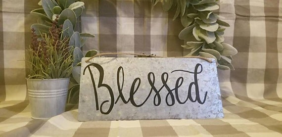 Galvanized Blessed Hanging Wall Decor Metal Decor Metal Wall Etsy
