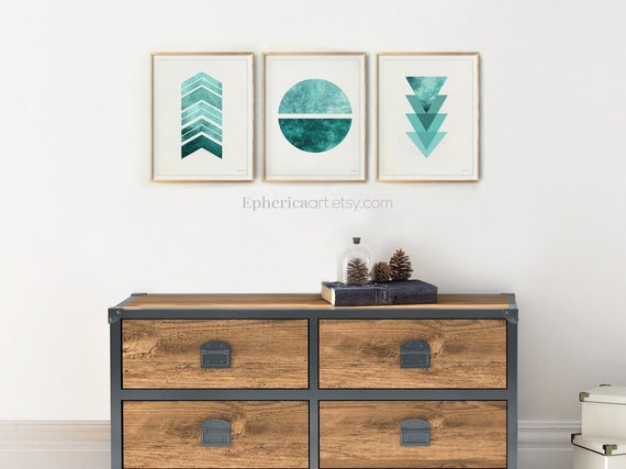 Teal Geometric Wall Art Teal Wall Decor Living Room Print Etsy