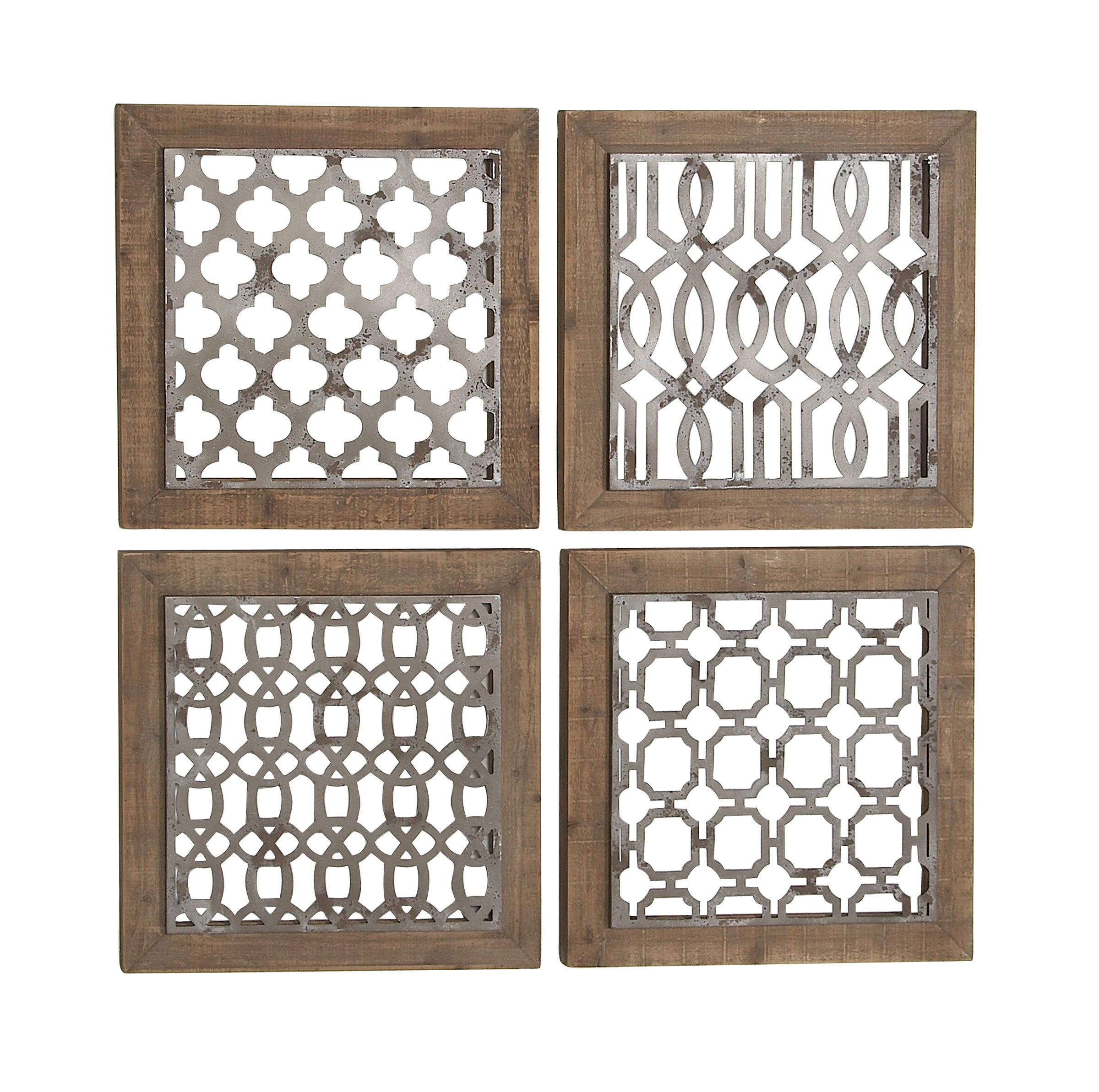Bungalow Rose 4 Piece Traditional Wood Geometric Wall Decor Set