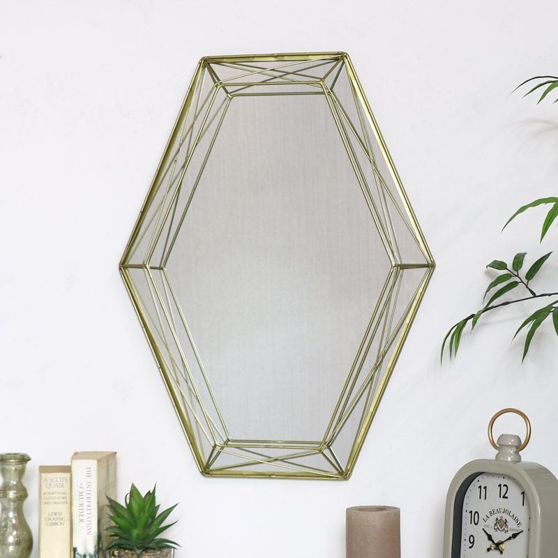 Small Diamond Geometric Wall Art Mirror Picture Contemporary Shiny