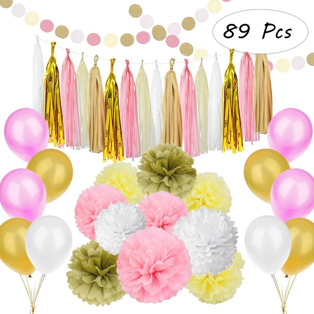 89 Pcs Gold Pink Party Decorations Kit Party Supplies Shopee