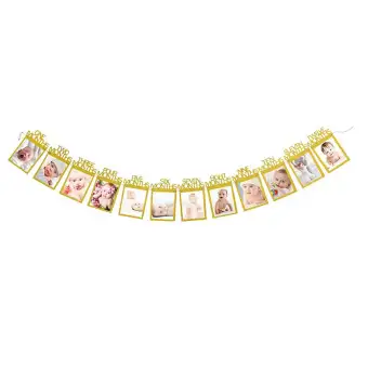 12 Months Photo Frame Banner First Happy Birthday Decorations 1st