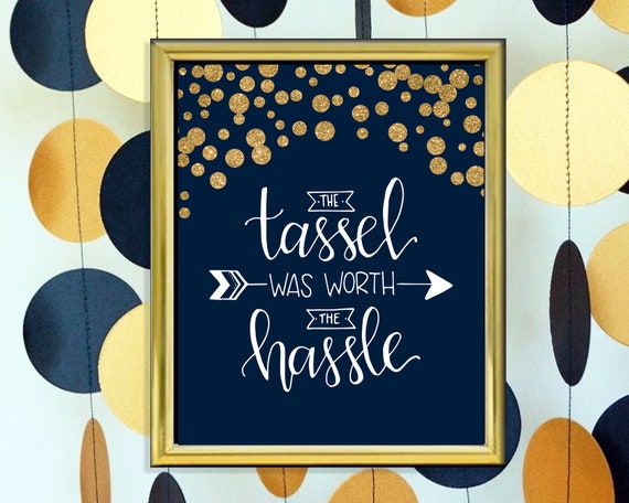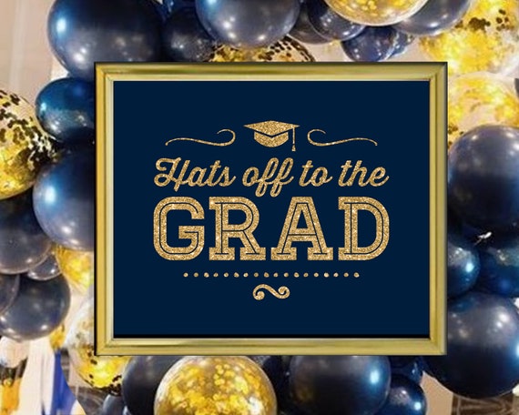 Set Of 5 Gold Glitter And Navy Blue Grad Party Decorations Etsy