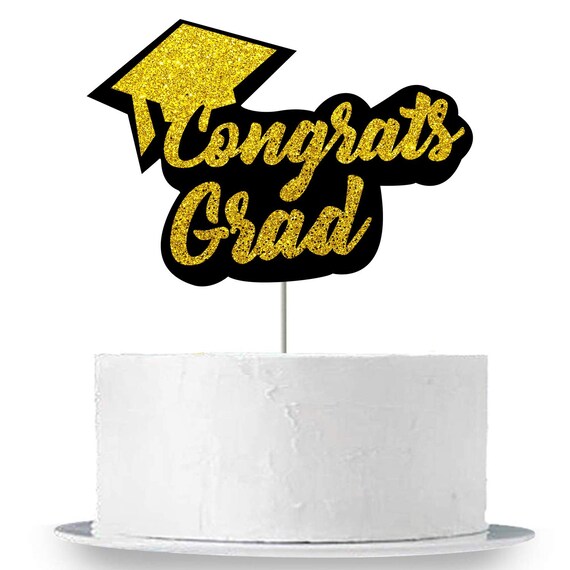 Katchon Congrats Grad Cake Topper With Cap Real Black And Etsy