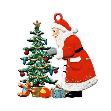 Santa Decorating Hanging Pewter Ornament Cecconi