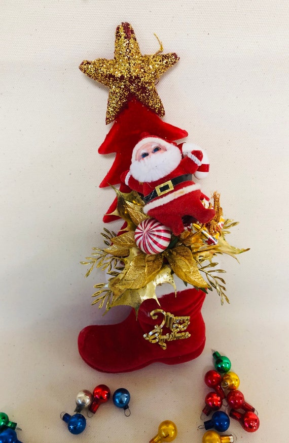 Vintage Christmas Santa Boot Wall Hanging Santa Decoration Etsy