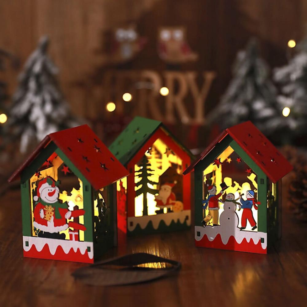 Christmas Santa Claus Ornaments Wooden Cabin Glowing Luminous