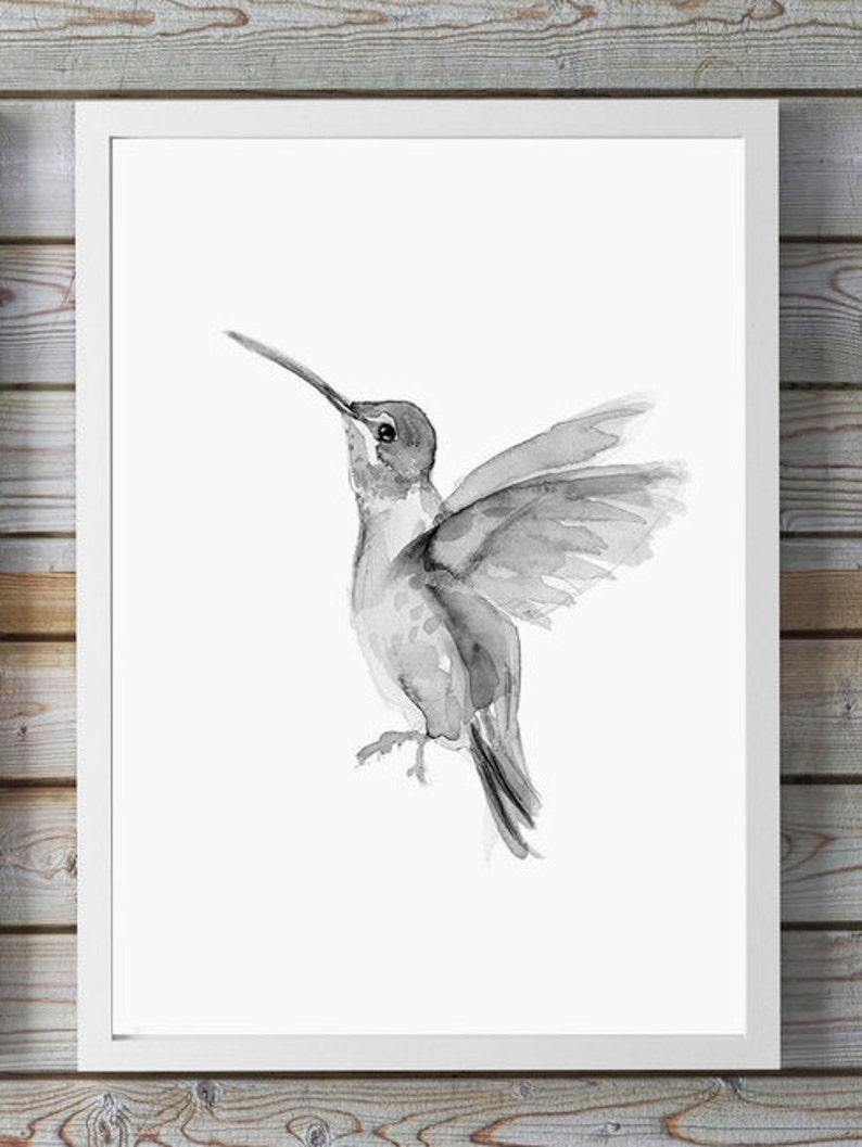 Hummingbird Art Hummingbird Decor Print Set Black Gray Etsy