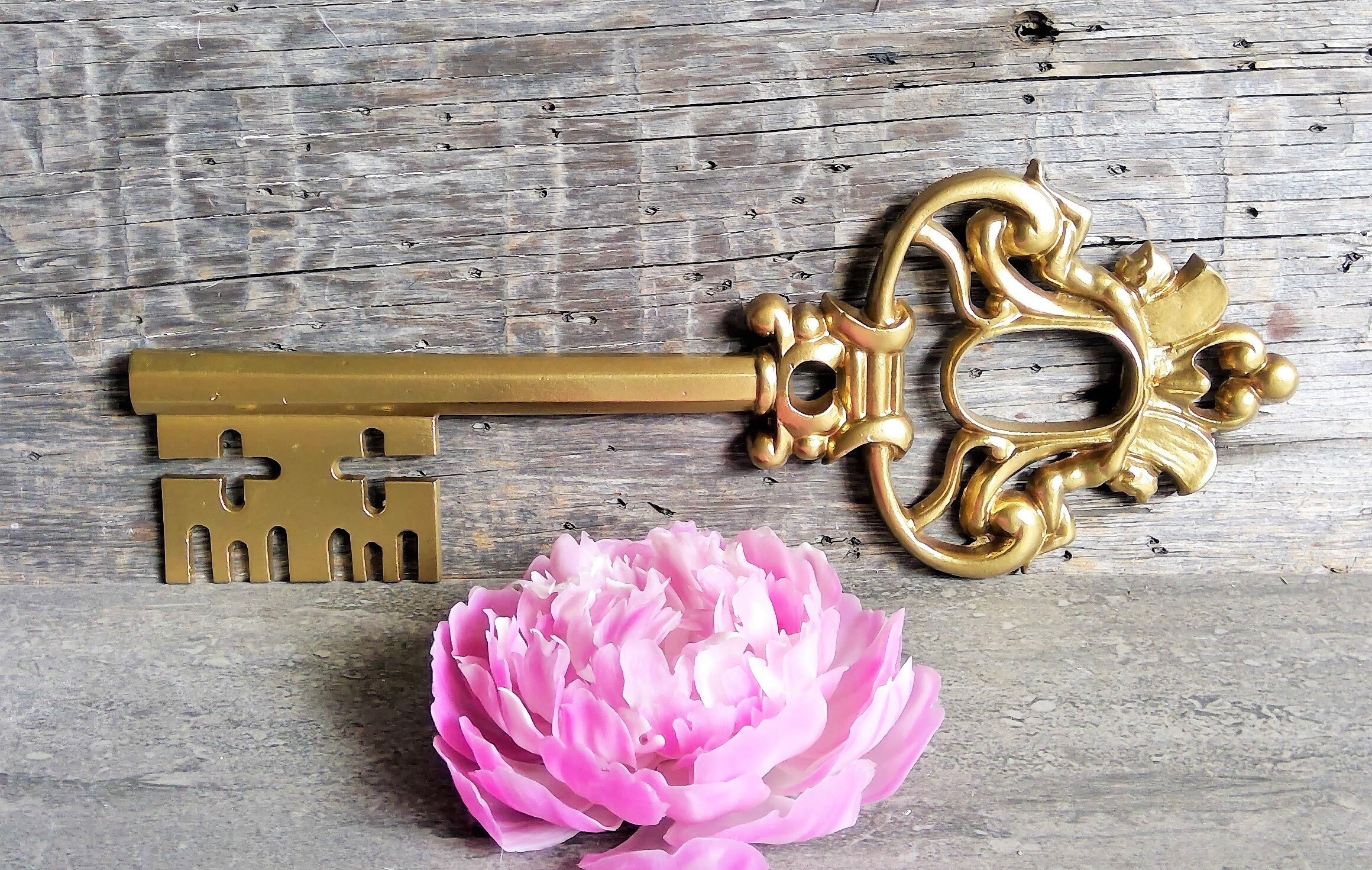 Large Skeleton Key Wall Hanging Ornate Vintage Metal Gold Key Etsy
