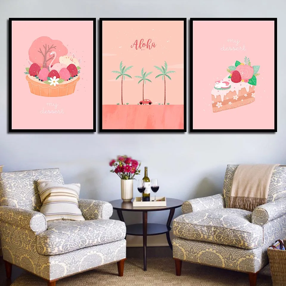 Nordic Watercolor Style Kids Decor Poster Pink Tree Flamingo And