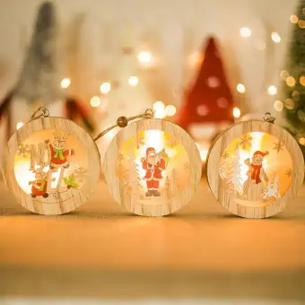 Gould 3pcs Led Light Wooden Cute Christmas Tree Ornaments Holiday