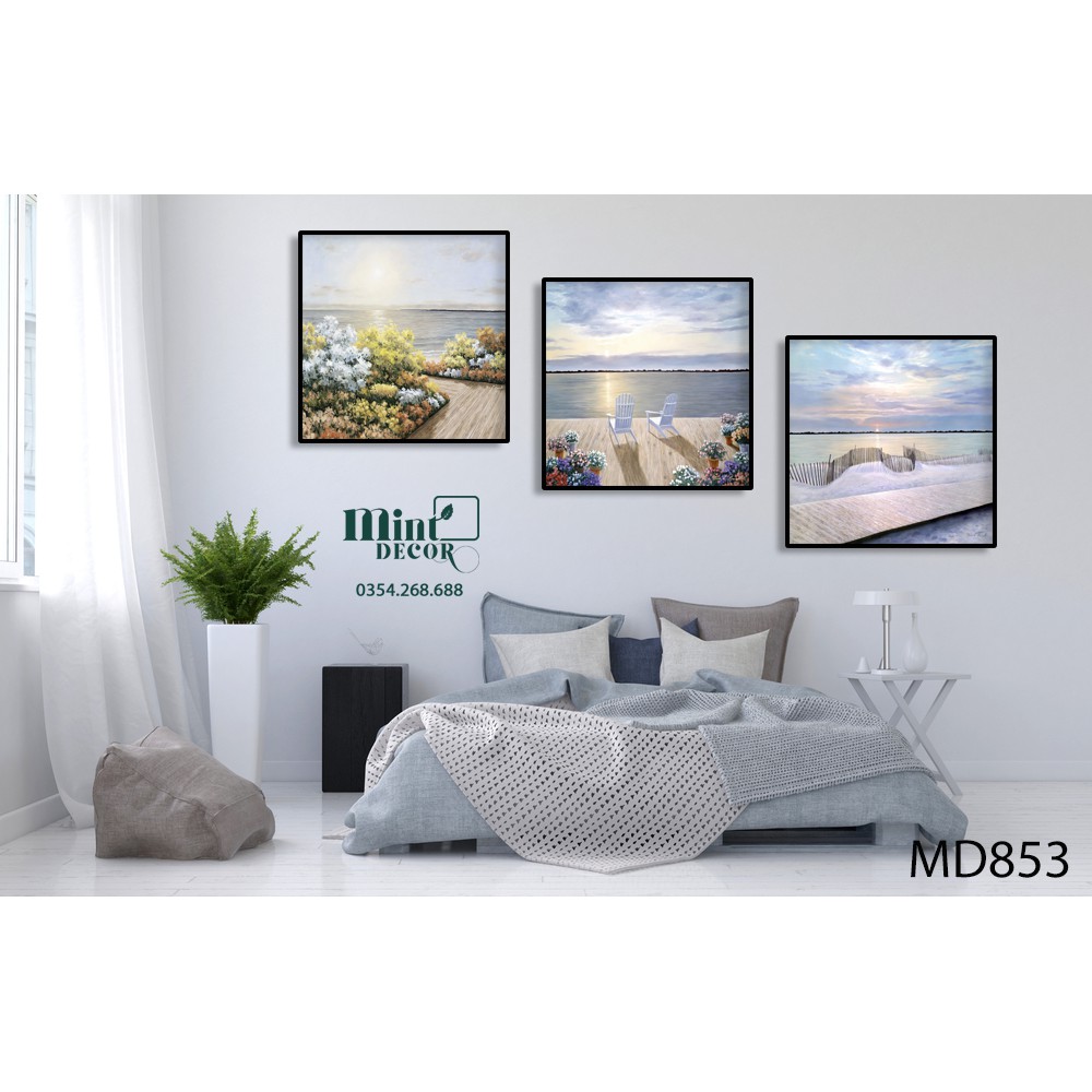Tranh Treo Tường Trắng đen Binh Minh Tren Bai Biển Mint Decor