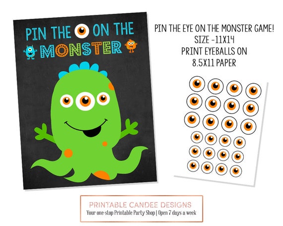 Pin The Eye On The Monster Game Monster Birthday Party Etsy