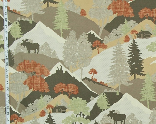 Moose Mountain Fabric Fall Cabin Lodge Decor Rustic Fabric