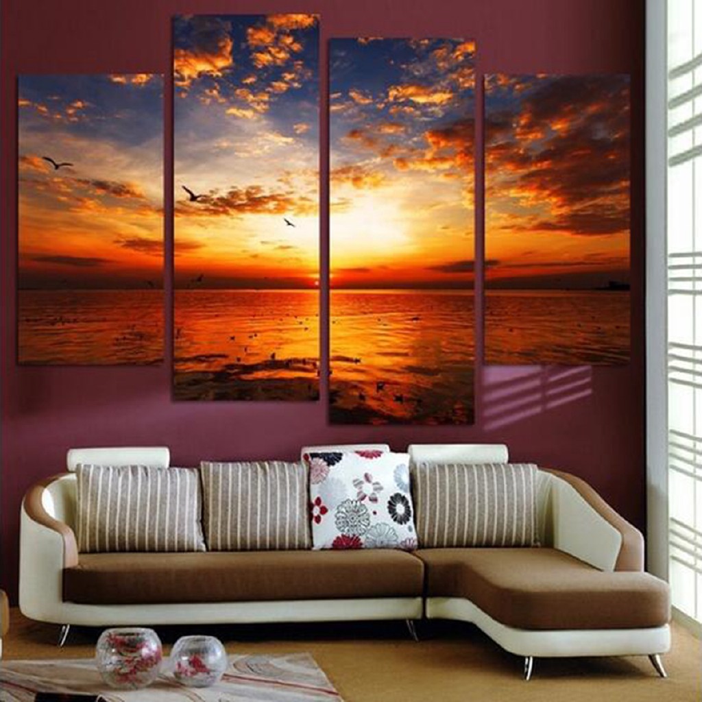 4 Panel Sea Sunset Landscape Painting Picture Canvas Art Wall