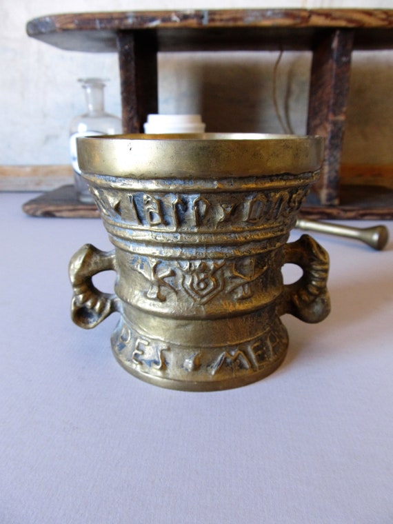 Vintage Brass Mortar And Pestle Rx Pharmacy Decor Old Etsy