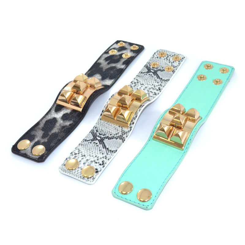 Pyramid Decor Pattern Faux Leather Bracelet Rings Tings