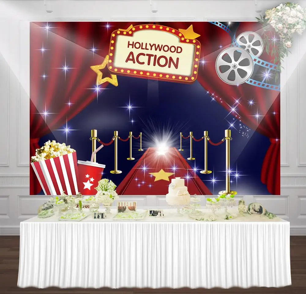 Hollywood Action Themed Party Backdrop Birthday Banners Red Carpet