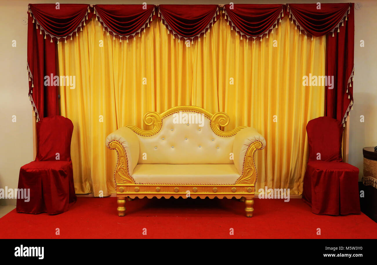 Stage Decorations With Fabric Sofa Over Red Carpet Stock Photo