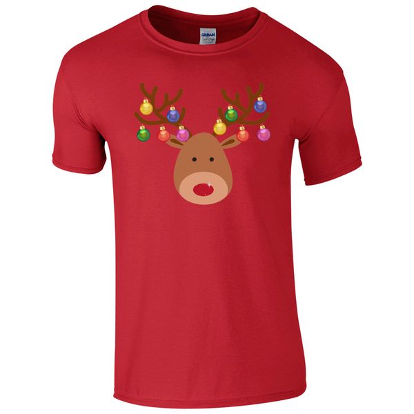 Christmas Baubles Rudolph Reindeer Face T Shirt Xmas Decorations