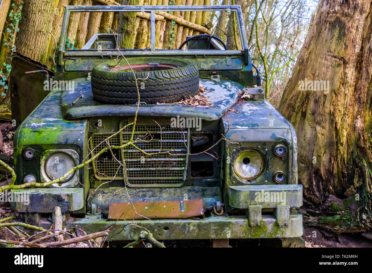 Old Wrecked Jeep In A Forest Abandoned Vehicle Safari