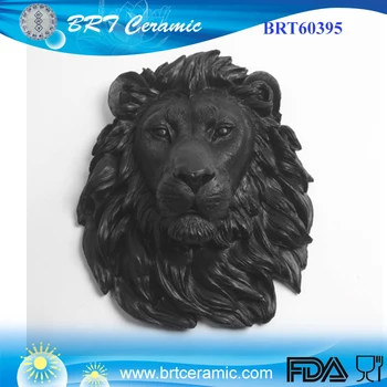 Wall Mounted Safari Decorations Large Resin Lion Head Black