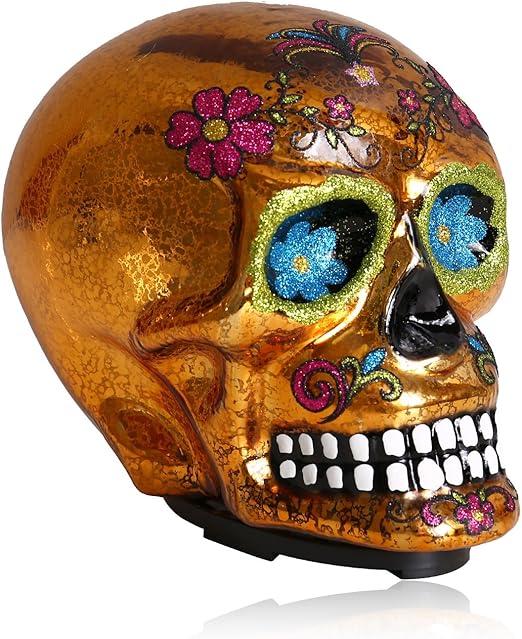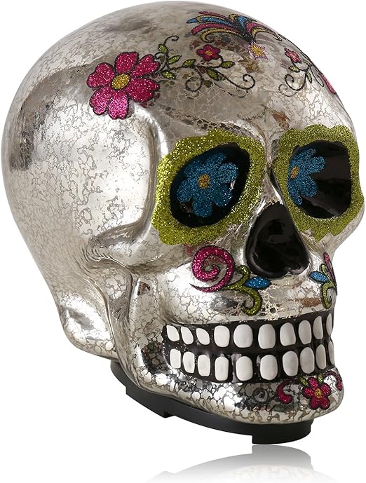 Metallic Day Of The Dead Daisy And Flower Skull Decoration