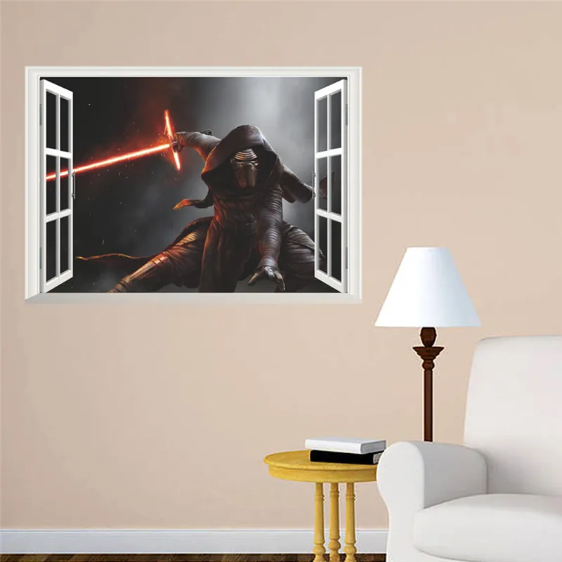 Fake 3d Window Darth Vader Star War Figure Wall Stickers For Kids