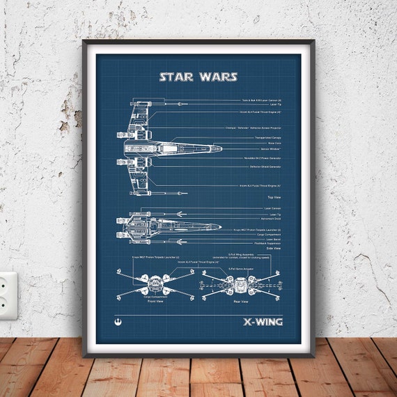 X Wing Fighter Minimalist Poster Star Wars Blueprint Image Etsy