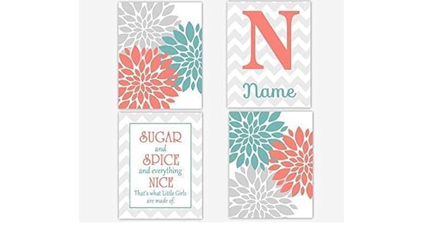 Amazon Com Coral Teal Flower Baby Girl Nursery Art Personalize