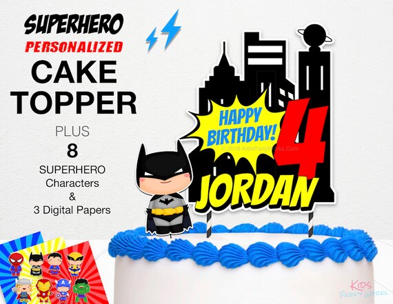 Superhero Cake Topper Superhero Birthday Superhero Party Cake Etsy