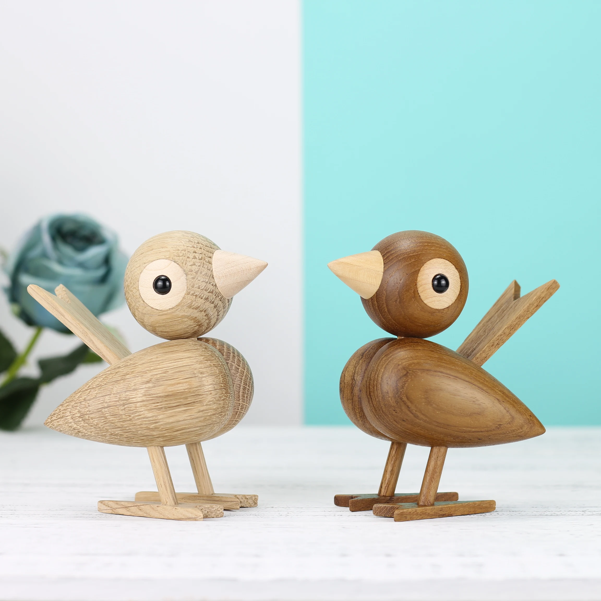 Nordic Denmark Deisgns Solid Oak Wooden Sparrow Puppet Nature Teak