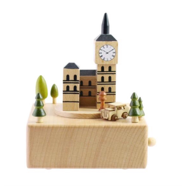 Wooden Big Ben Shape Music Box Toy For Kids Tabletop Decor Craft