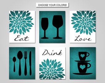Teal Kitchen Decor Teal Kitchen Print Teal Kitchen Wall Art Etsy