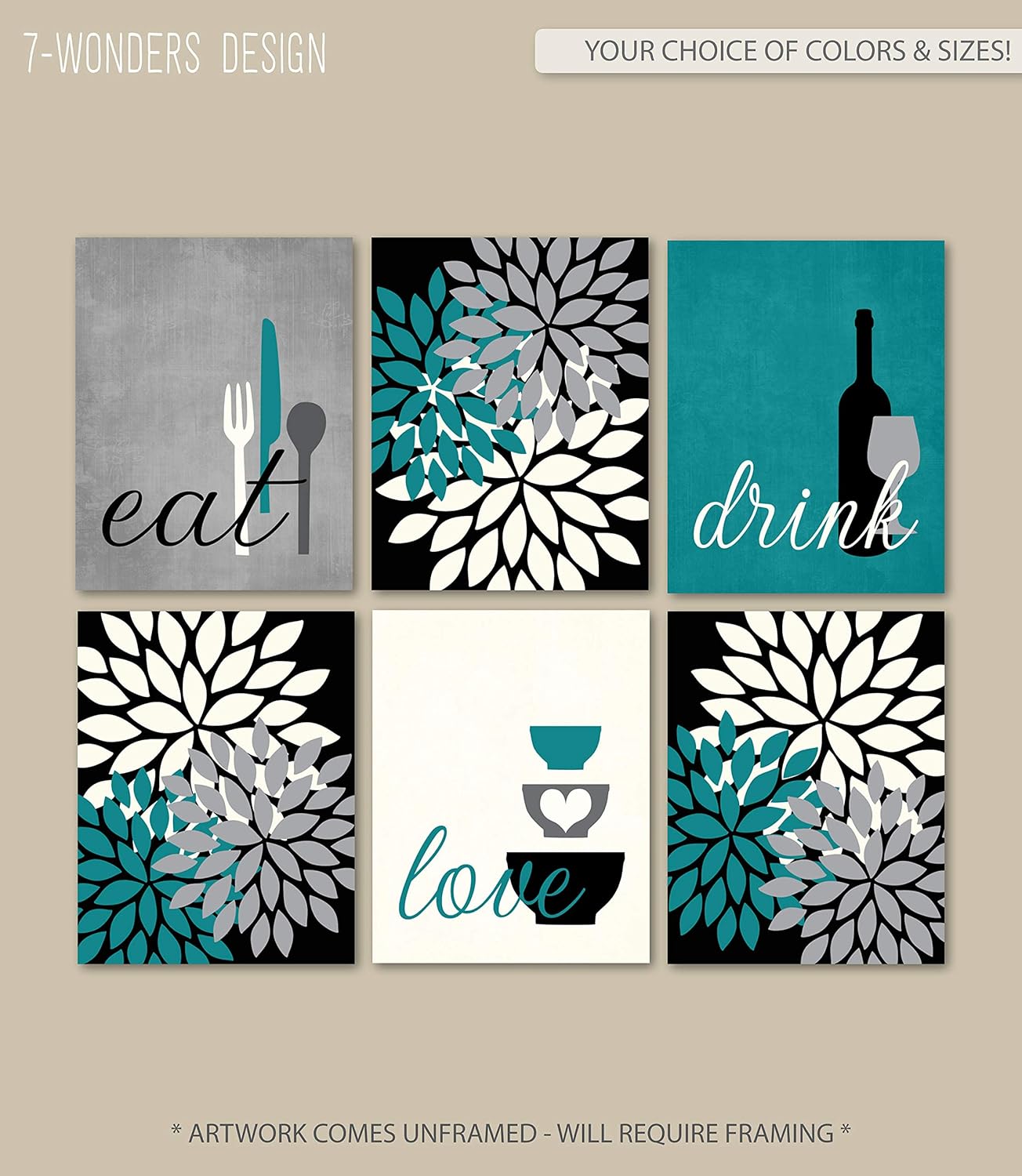 Pictures Picture Frames Timprint Turquoise Gray Kitchen Decor