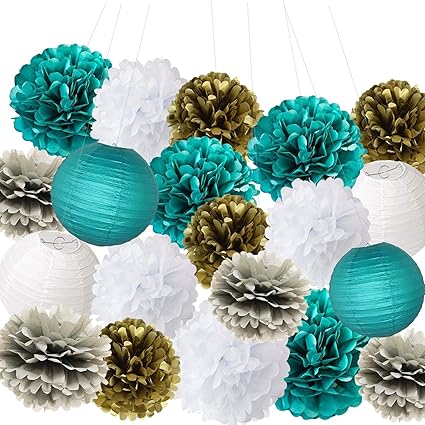 Teal Bridal Shower Decorations 15 Pcs Of White Teal Grey Tissue